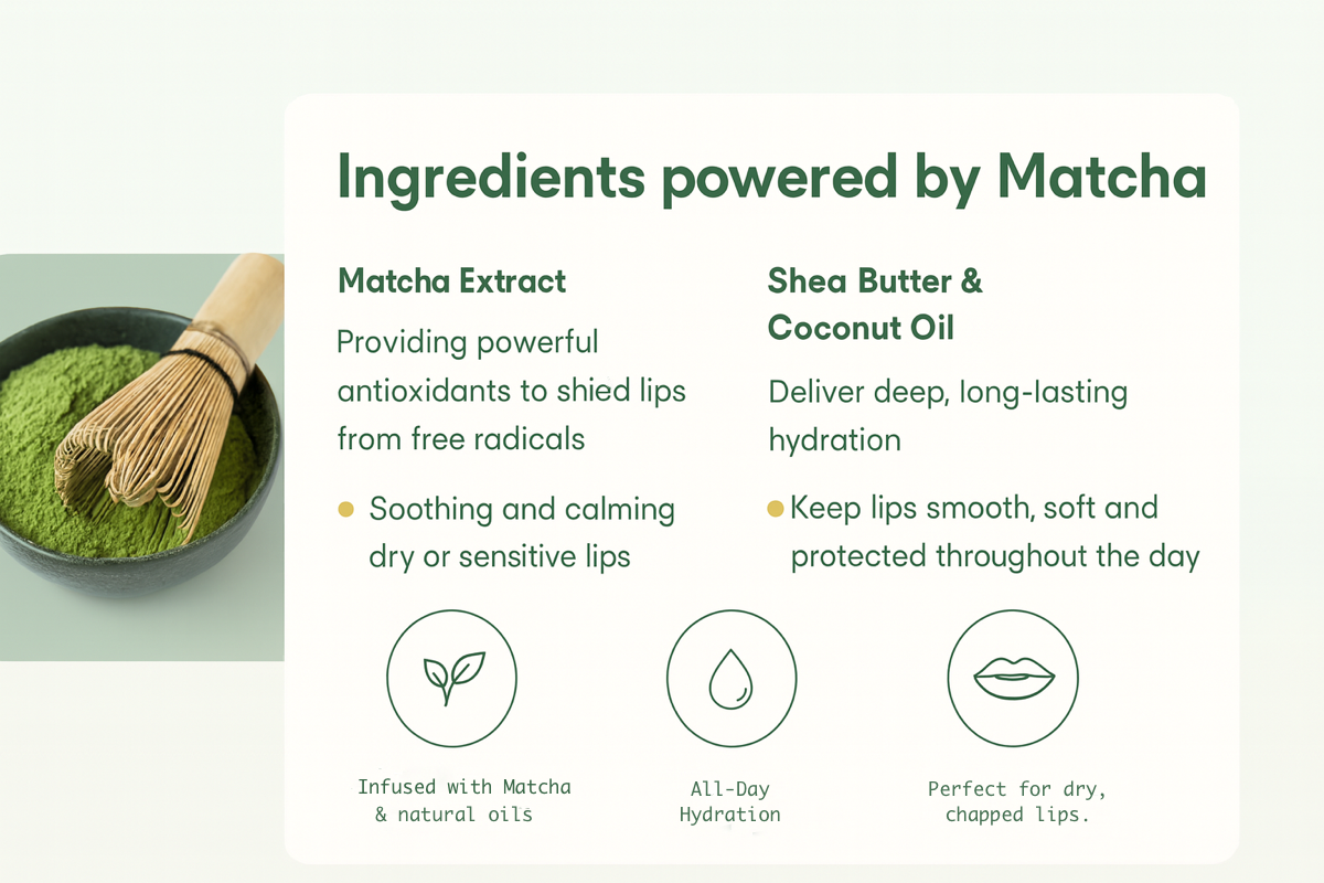 Unlike heavy, greasy balms, MatchaBalm feels light, absorbs fast, and keeps lips smooth all day, with a delicate Matcha scent that feels fresh, not overpowering.